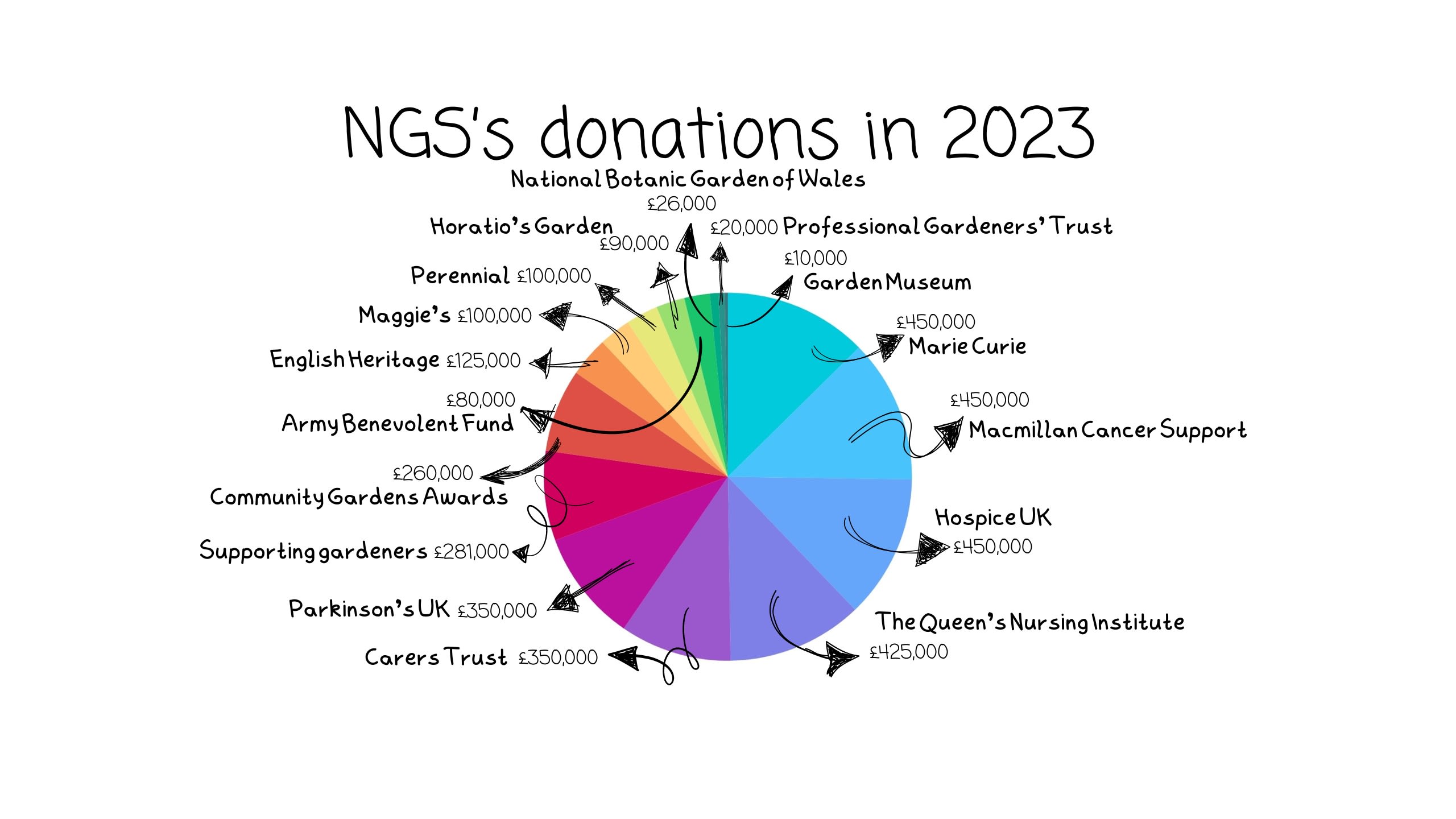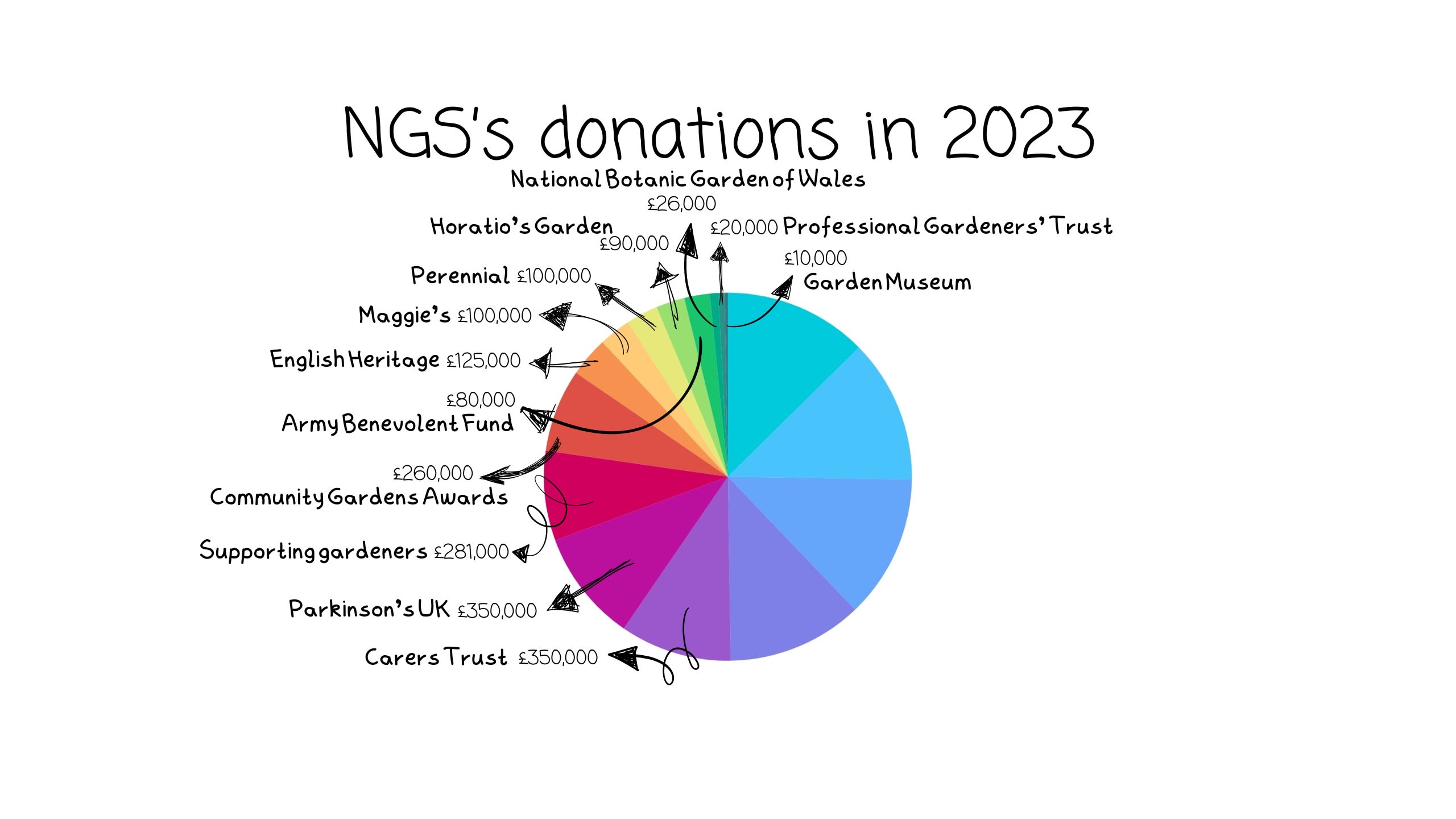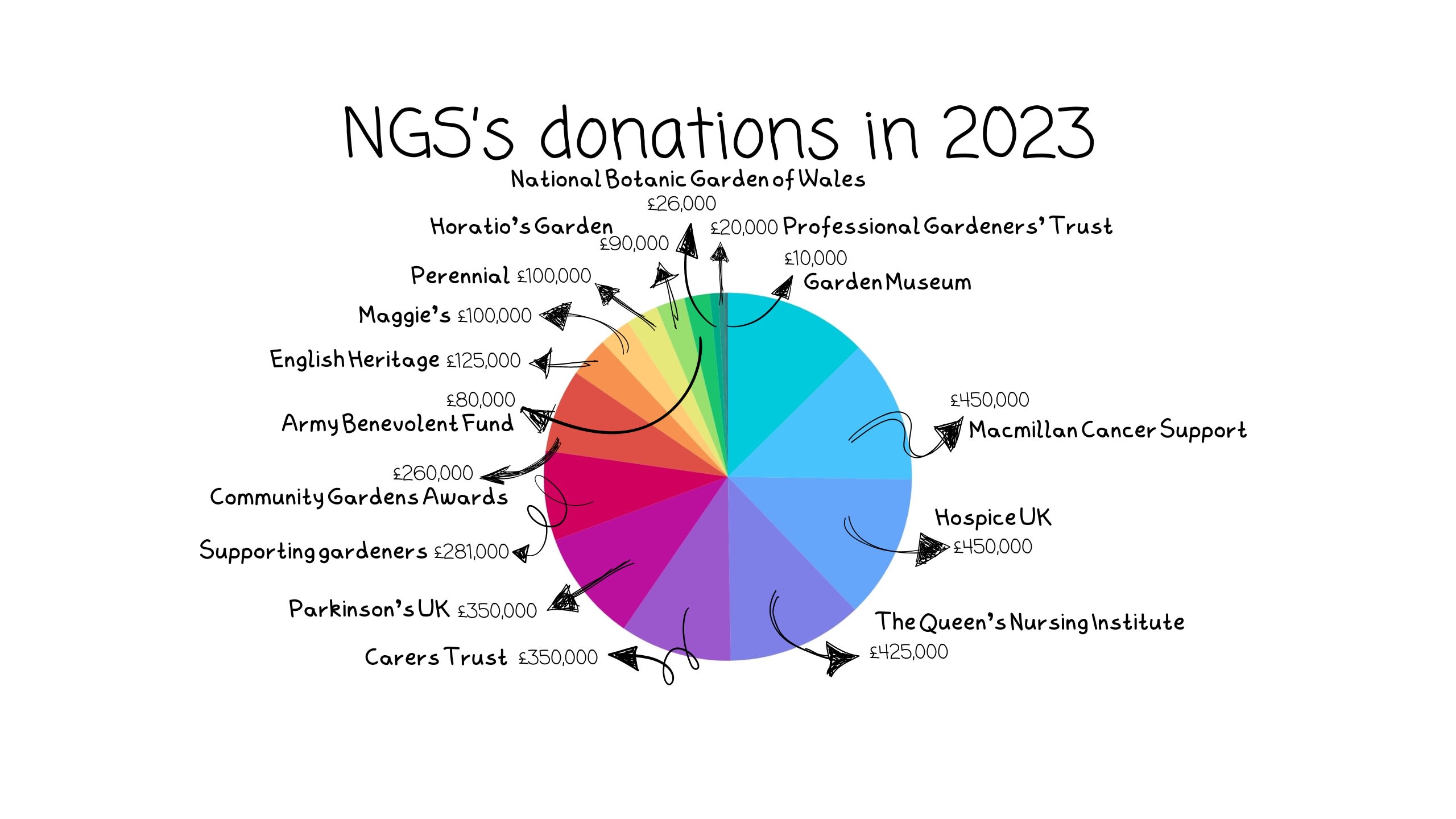 Thanks to the generosity of garden owners, the volunteers and visitors have gathered and donated more than £70 million to NGS’s beneficiary charities over the years, and in November 2023 they donated more than £3,000,000 to the charities they support.