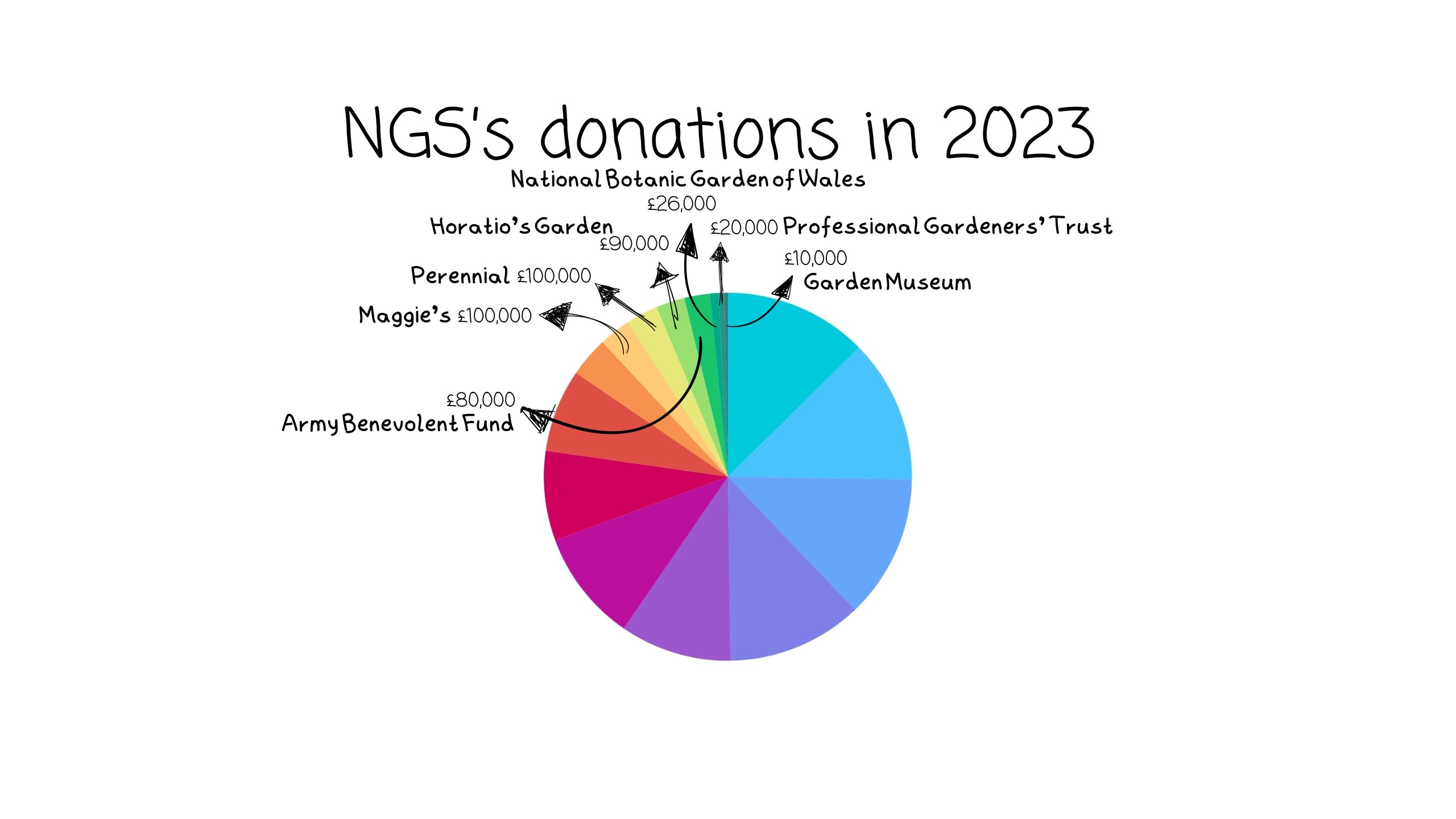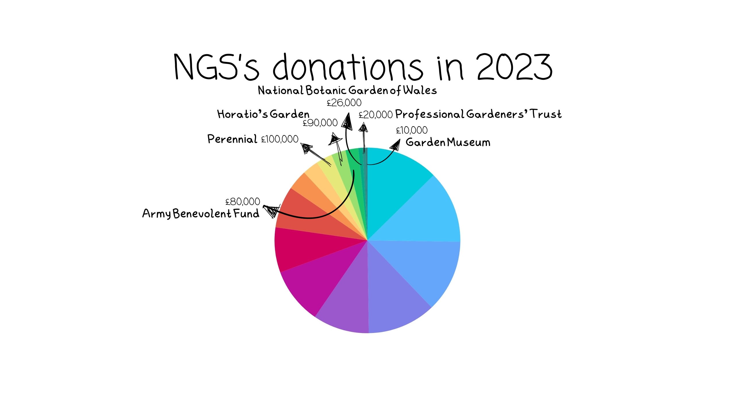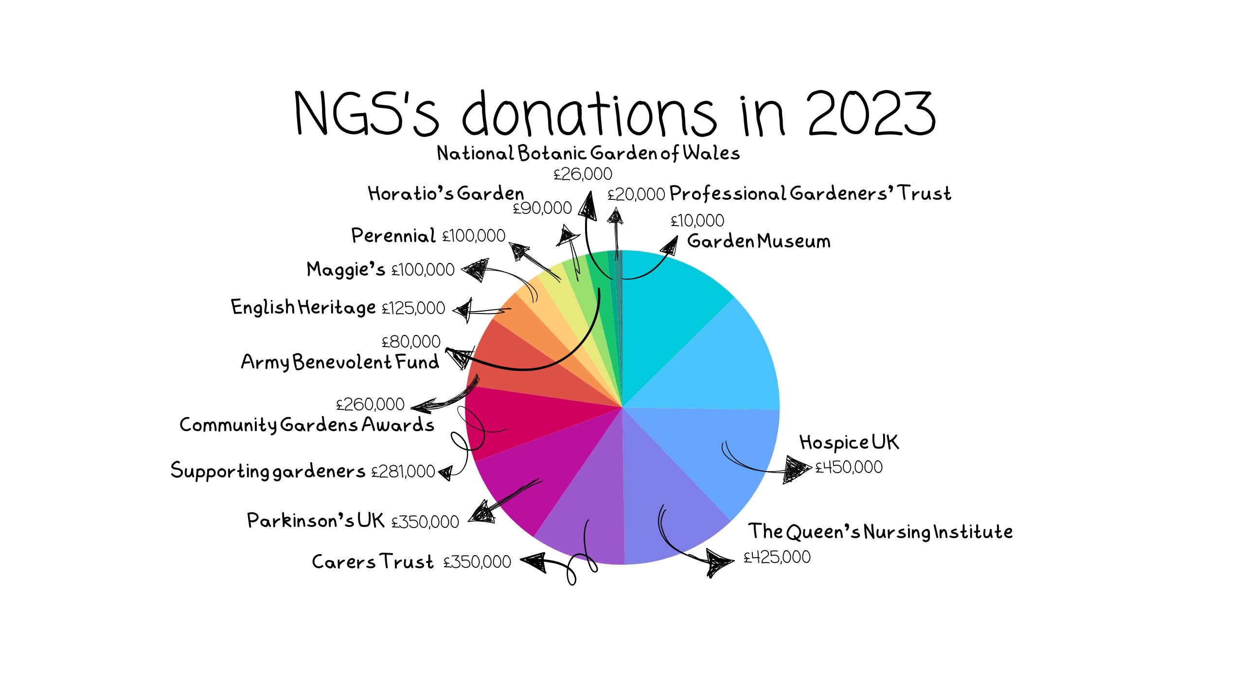 Thanks to the generosity of garden owners, the volunteers and visitors have gathered and donated more than £70 million to NGS’s beneficiary charities over the years, and in November 2023 they donated more than £3,000,000 to the charities they support.